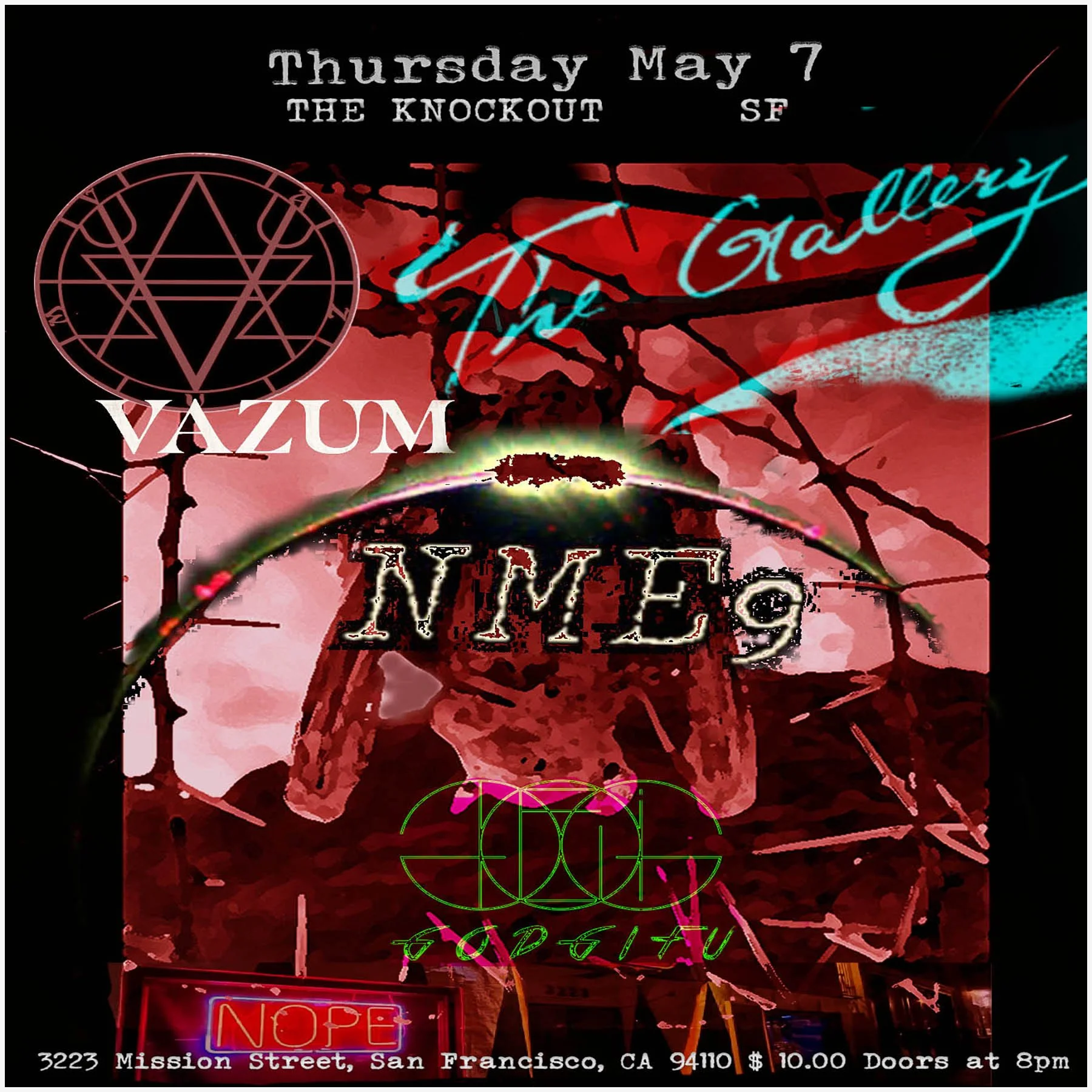 Back to All Events THE GALLERY + VAZUM (DETROIT) + NME9 + GODGIFU (8pm - close) Thursday, May 7, 2026 8:00 PM Friday, May 8, 2026 2:00 AM Google Calendar ICS THE GALLERY + VAZUM (DETROIT) + NME9 (LOS ANGELES) + GODGIFU • A NIGHTMARE OF GOTH, DEATHGAZE, INDUSTRIAL, AND MACHINE DRIVEN POST PUNK • DOORS 8PM • SHOW 9PM TO CLOSE • $10 • 21+