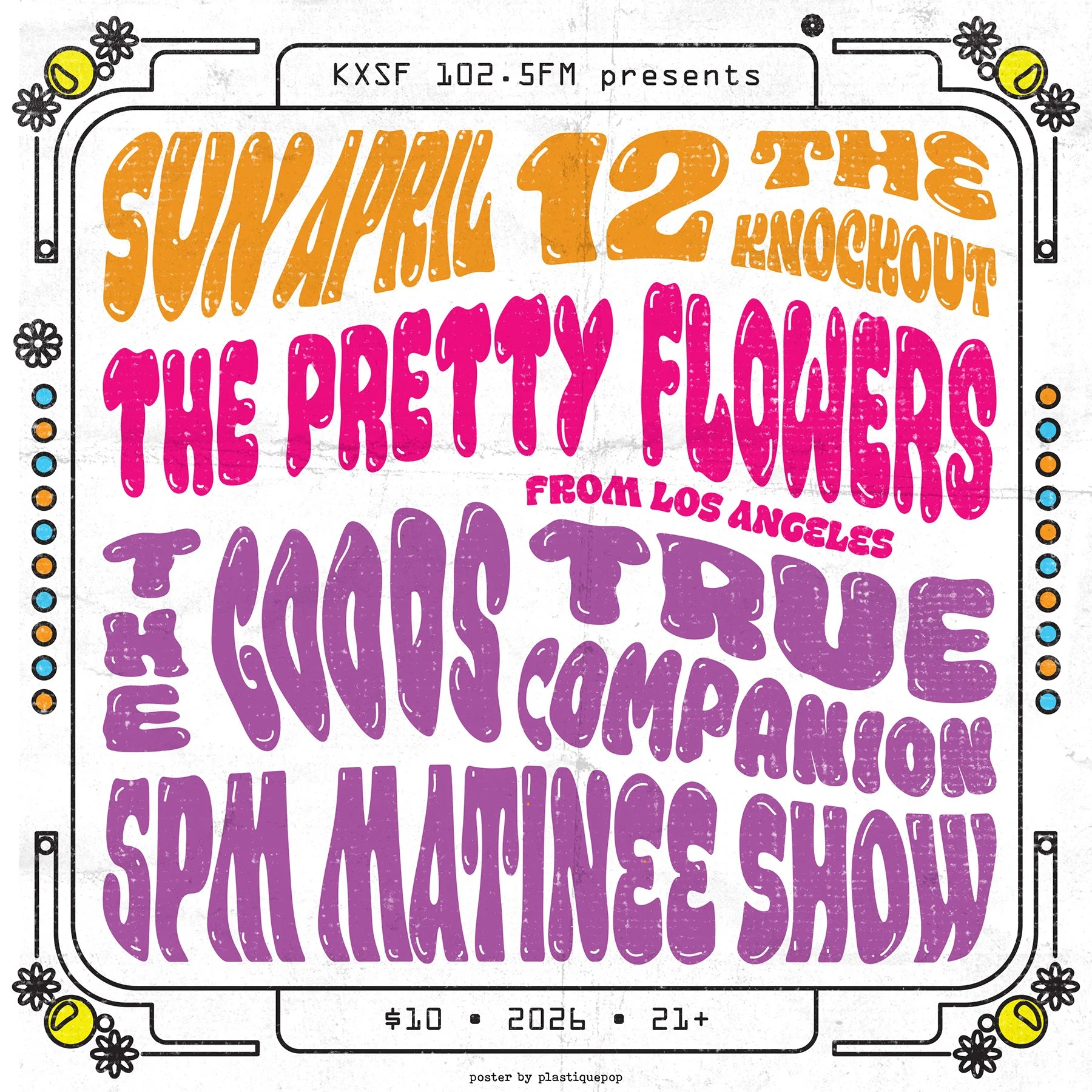 MATINEE SHOW : THE PRETTY FLOWERS (LOS ANGELES) + THE GOODS + TRUE COMPANION • AN AFTERNOON OF PRETTY INDIE POP ROCK IN THE MISSION • DOORS 5PM • SHOW 6PM TO 9PM • $10 • 21+