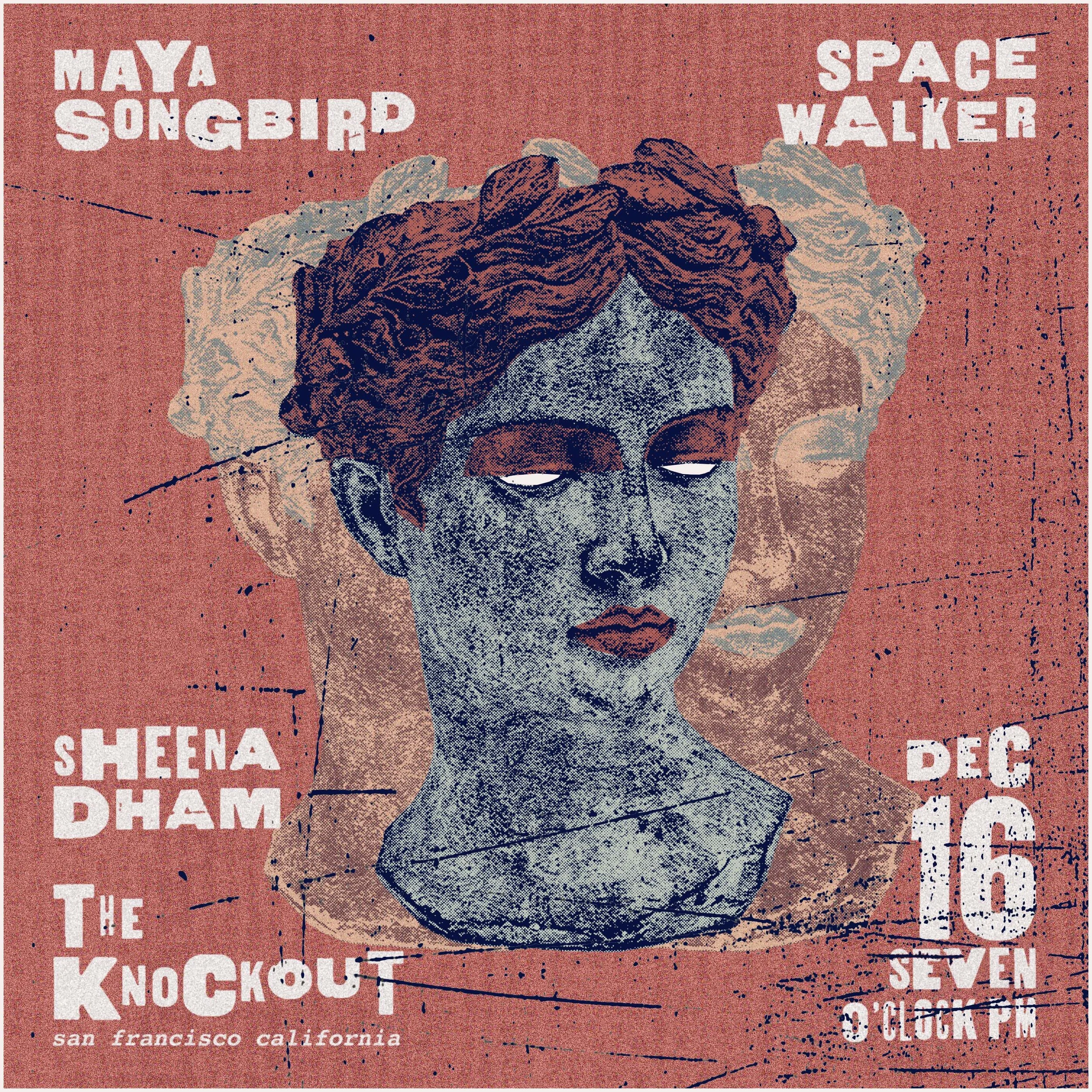 TUESDAY NIGHT LIVE WITH MUSIC BY MAYA SONGBIRD + SPACE WALKER + SHEENA DHAM + ONE OTHER ACT TO BE ANNOUNCED | LET’S FILL YOUR EARS WITH SOME LO-FI DISCO & FUNKY EXPERIMENTAL ELECTRONIC HYPER POP HIP HOP DANCE MUSIC! | DOORS 7PM | SHOW 8PM TO CLOSE | $10 | 21+