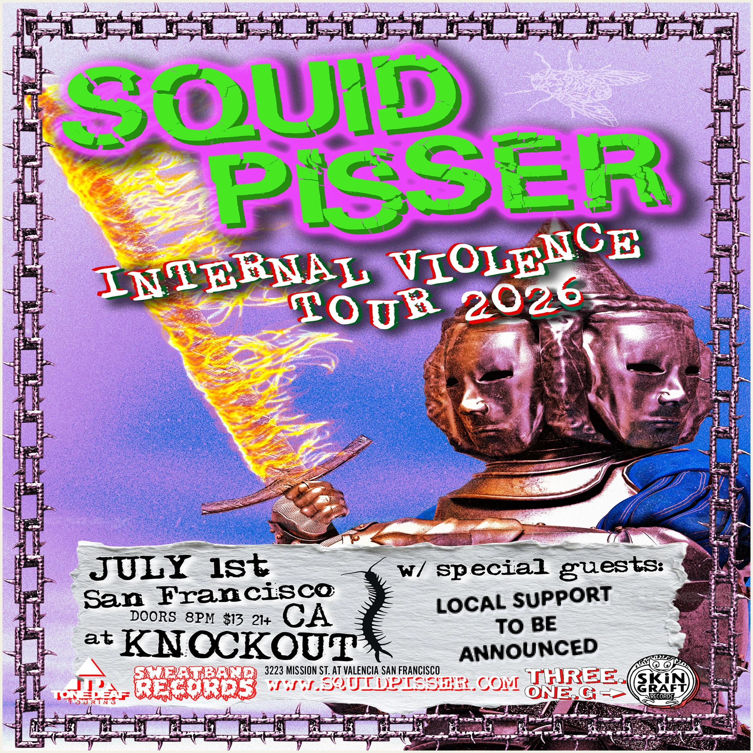 SQUID PISSER LIVE AT THE KNOCKOUT! PREPARE FOR A NIGHT OF LOUD, SCREAMING, FULL THROATED, STABBING, HARDGORE PUNK! YOU HAVE BEEN WARNED! • LOCAL SUPPORT TO BE ANNOUNCED • DOORS 8PM • SHOW 9PM TO CLOSE • $13 • 21+