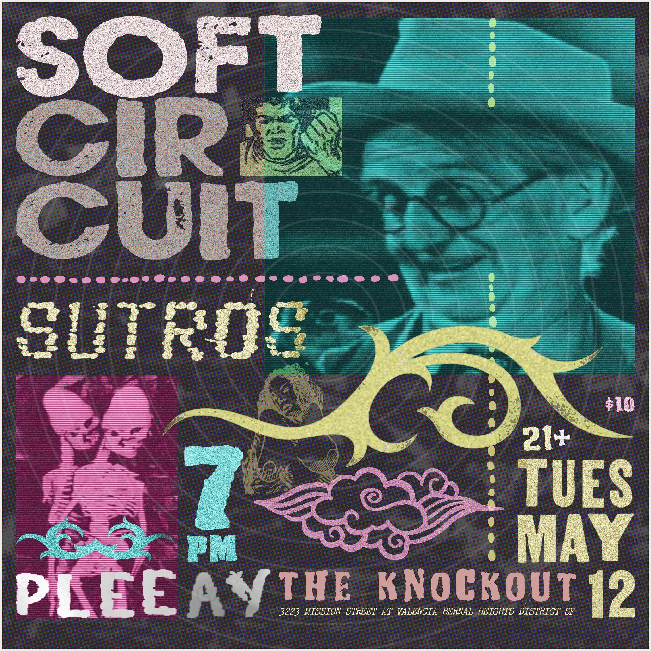 Back to All Events SOFT CIRCUIT + SUTROS + PLEEAY (7PM - CLOSE) Tuesday, May 12, 2026 7:00 PM Wednesday, May 13, 2026 2:00 AM Google Calendar ICS SOFT CIRCUIT + SUTROS + PLEEAY • BAY AREA POST PUNK SYNTH POP WITH A HEAVY DOSE OF PSYCHEDELIC NOISE TO OVERWHELM YOUR CEREBELLUM - WILL YOU BE READY? • DOORS 7PM • SHOW 8PM TO CLOSE • $10 • 21+